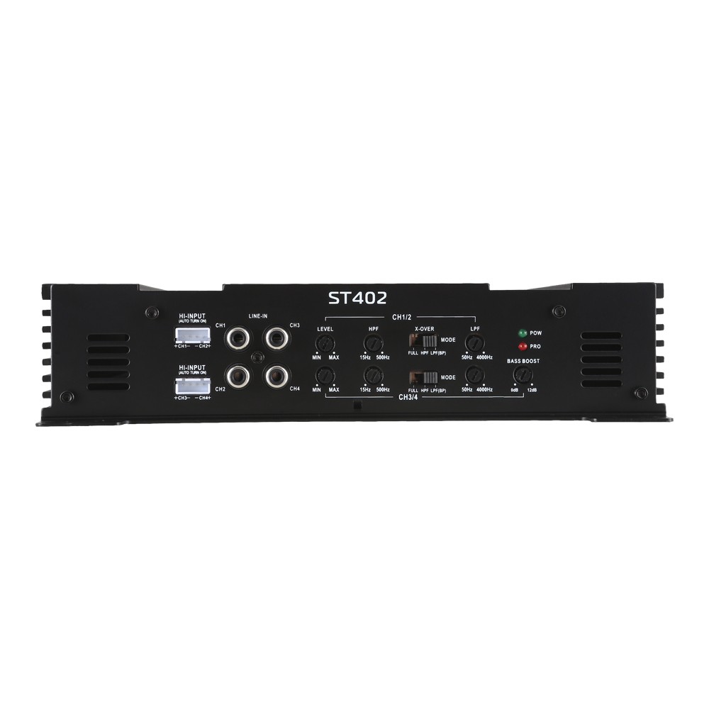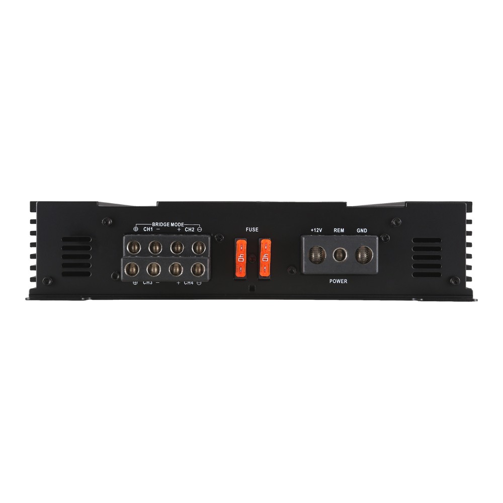 4kanálový zosilňovač, 4 x 120/2 x 380 W RMS (4 Ω), 4 x 190 W RMS (2 Ω), trieda AB
