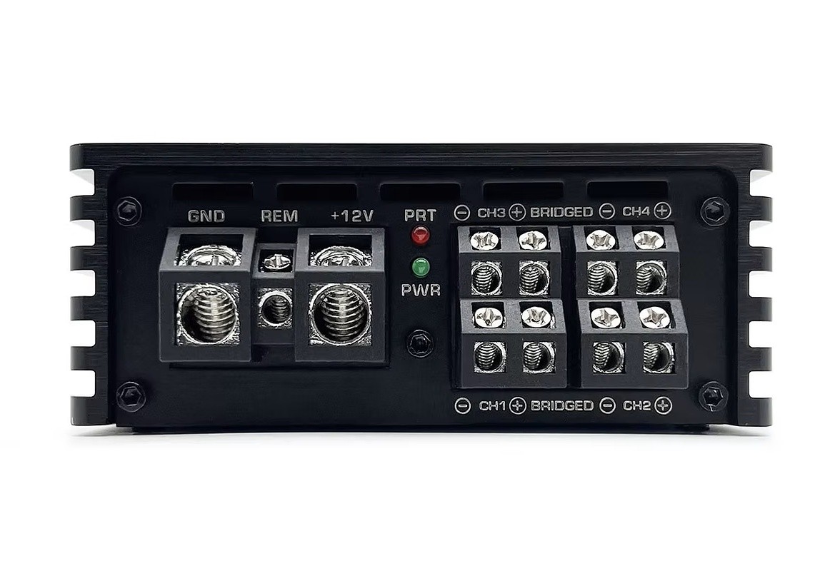 - Výkon: 4 × 150 W RMS @ 4 Ω / 2 × 350 W RMS v mostíku.