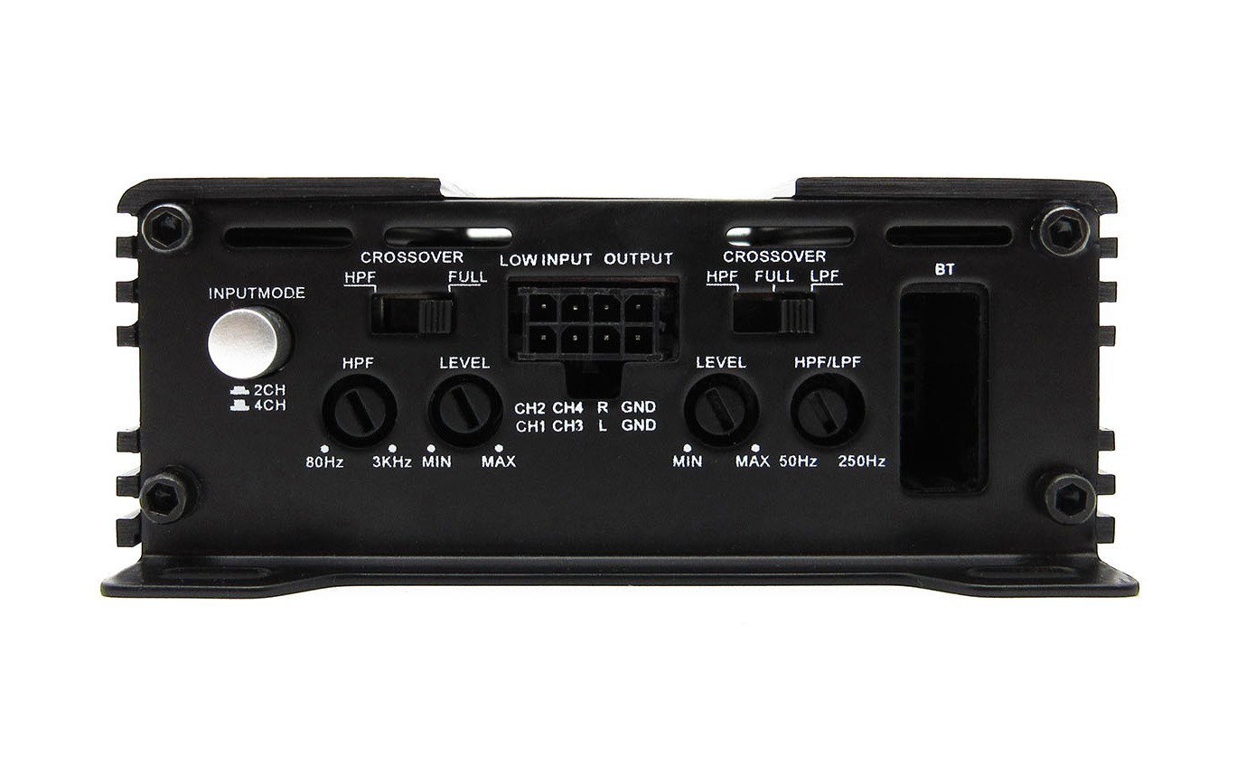| Počet kanálov zosilňovačaZosilňovače sa rozdeľujú na: - Monobloky - 2-kanálové - 3kanálové - 4kanálové - 5kanálové - 6kanálové - Viac kanálové Každý kanál slúži na napájanie jedného reproduktora u koaxialneho typu, popr. jednej strany, keď sa jedná o komponentné reproduktory. Zosilňovače typu monoblok sa používajú hlavne na subwoofery. 2kanálové sú vhodné ako na subwoofery, tak napríklad na prednej pár reproduktorov v aute. 3kanálové sa používa na predné alebo zadné reproduktory + subwoofer. 4kanálové sa používajú na predné + zadné reproduktory alebo 1 pár reproduktorov + subwoofer. 6 alebo 5kanálové sa používajú na 2 páry reproduktorov + subwoofer, najčastejšie. Můstkování znamená zapojenie zosilňovače do mostíka, keď sa uplatňuje + pól z jedného kanála a - pól z druhého kanála. Vo väčšine prípadov to býva na zosilňovači znázornenej ako "Bridged". | 4 |