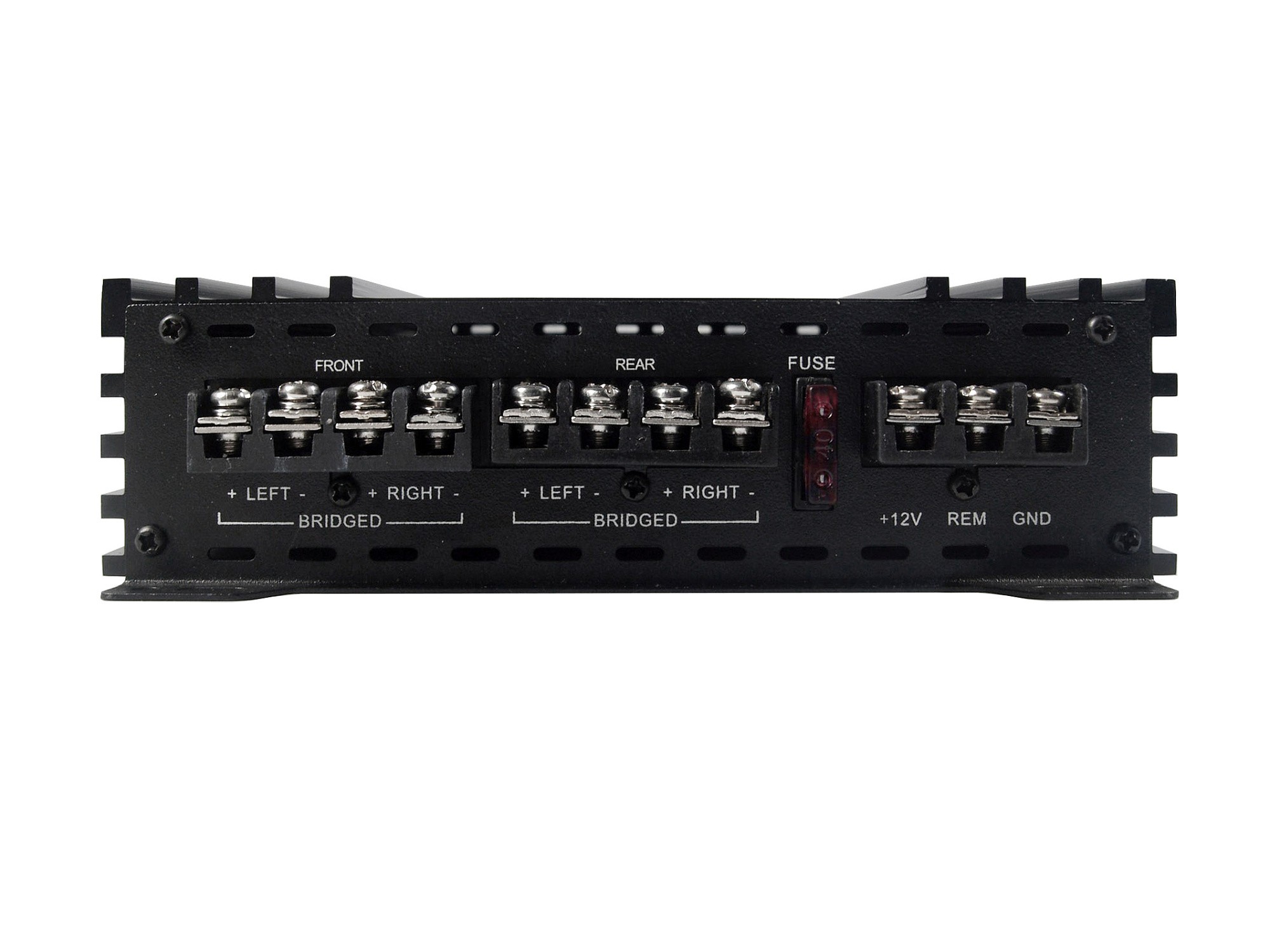 | Počet kanálov zosilňovačaZosilňovače sa rozdeľujú na: - Monobloky - 2-kanálové - 3kanálové - 4kanálové - 5kanálové - 6kanálové - Viac kanálové Každý kanál slúži na napájanie jedného reproduktora u koaxialneho typu, popr. jednej strany, keď sa jedná o komponentné reproduktory. Zosilňovače typu monoblok sa používajú hlavne na subwoofery. 2kanálové sú vhodné ako na subwoofery, tak napríklad na prednej pár reproduktorov v aute. 3kanálové sa používa na predné alebo zadné reproduktory + subwoofer. 4kanálové sa používajú na predné + zadné reproduktory alebo 1 pár reproduktorov + subwoofer. 6 alebo 5kanálové sa používajú na 2 páry reproduktorov + subwoofer, najčastejšie. Můstkování znamená zapojenie zosilňovače do mostíka, keď sa uplatňuje + pól z jedného kanála a - pól z druhého kanála. Vo väčšine prípadov to býva na zosilňovači znázornenej ako "Bridged". | 4 |