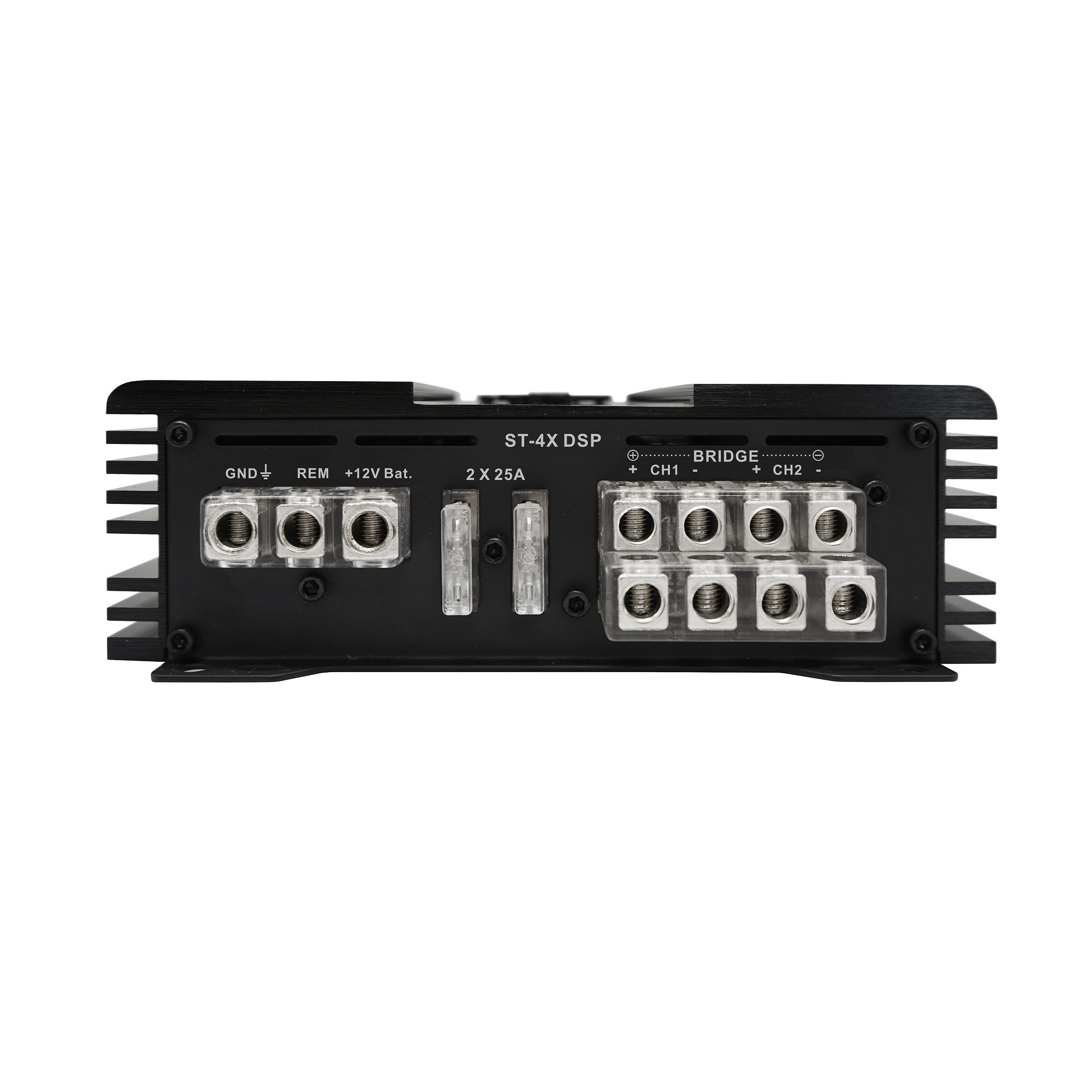 Rada zosilňovačov Studio-X od spoločnosti Zapco bola navrhnutá špeciálne pre dnešný automobilový audio trh. Kompaktné šasi Studio-X umožňuje jednoduchú montáž do akéhokoľvek auta a vďaka modernému hranatému dizajnu v čiernej farbe zosilňovače skvele vyzerajú v každej inštalácii. Druhá generácia štvorkanálového zosilňovača s DSP procesorom bola navrhnutá tak, aby priniesla nenapodobiteľnú kvalitu Zapco v kompaktnom a elegantnom čiernom šasi. Vďaka špičkovým vnútorným komponentom a inovatívnemu dizajnu patria zosilňovačom Zapco ST-DSP právom svetové prvenstvo v kvalite zvuku v danej cenovej kategórii. Pre rok 2019 ponúka Zapco dva zosilňovače s integrovaným DSP procesorom, na ktorom nastavíte zvuk do posledného detailu. Samozrejmosťou sú filtre s hornou a dolnou priepusťou, nastavenie fázy, časové korekcie a k dispozícii je aj 15-kanálový parametrický ekvalizér na každom kanáli. Aby bolo ladenie hračkou, v Zapco vyvinuli vysoko funkčný a ľahko použiteľný program pre PC. So zosilňovačmi ST-4X DSP a ST-6X DSP získate ohromujúci zvuk triedy A/B v kompaktnom šasi a s úžasnými možnosťami doladenia zvuku.