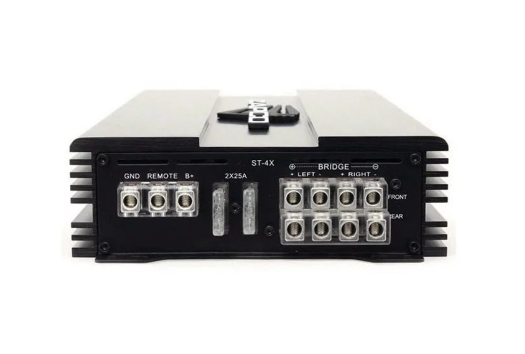 Rad zosilňovačov Studio-X od spoločnosti Zapco bol navrhnutý špeciálne pre dnešný automobilový audio trh. Kompaktné šasi Studio-X umožňuje jednoduchú montáž do akéhokoľvek auta a vďaka modernému hranatému designu v čiernej farbe zosilňovača vyzerajú skvele v každej inštalácii. Zapco ST-4X II je štvorkanálový zosilňovač modelového radu Studio-X s výkonom 50 W RMS na kanál. Od svojho uvedenia na trh ide o najlepšie predávaný zosilňovač, aký kedy v Zapco vyrobili. A nie je sa čomu diviť. Vďaka celkovému výkonu 320 W RMS, univerzálnosti a možnosti premostenia 4kanálovej platformy a tiež všetkým funkciám, ktorými tento zosilňovač disponuje, ide o zosilňovač s excelentnou rovnováhou medzi vysokou kvalitou zvuku, výkonom a cenou.