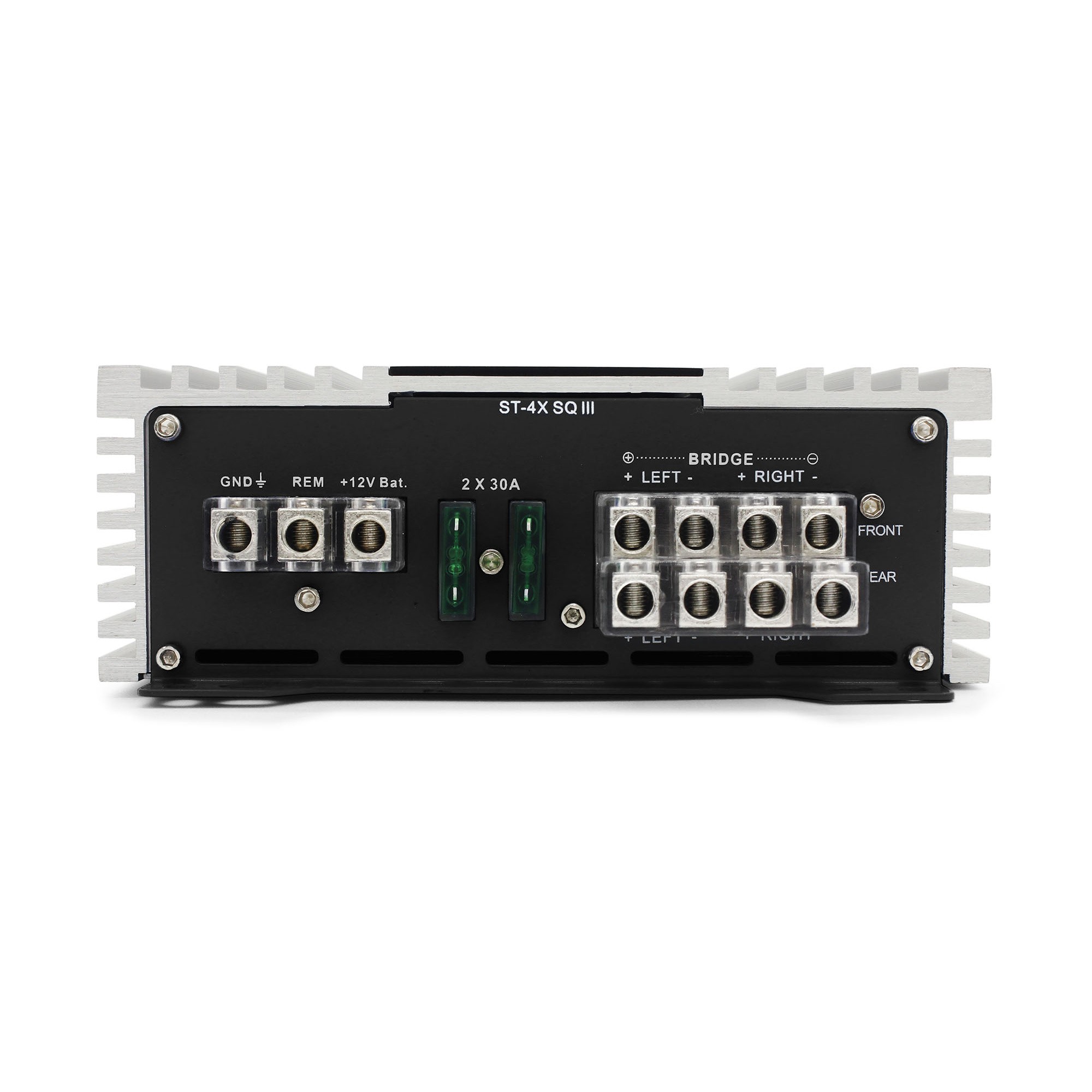 V roku 2022 spoločnosť Zapco predstaví šesť modernizovaných zosilňovačov triedy AB tretej generácie. Šasi zosilňovača je úplne nové, čiernu farbu nahradil brúsený hliník a niekoľko úprav vnútorných komponentov, ktoré posúvajú kvalitu zvuku o ďalší stupeň vyššie. Nové sú aj vnútorné ventilátory s reguláciou teploty, ktoré zabezpečia, že zosilňovač bude hrať celý deň bez problémov s prehrievaním. Všetky zosilňovače používajú bipolárne výstupné zariadenia pre čo najplynulejší zvuk. Spoločnými vlastnosťami zosilňovačov ST-X sú variabilné elektronické prepínače HP/LP/Full Range, variabilné zosilnenie basov, variabilné zosilnenie podľa páru kanálov, vstup pre úroveň reproduktorov, odolné svorky s pozitívnym zámkom a výstupy predzosilňovača na reťazové prepojenie s iným zosilňovačom vo vašom systéme bez pridávania ďalších káblov RCA. A najdôležitejšou vlastnosťou spoločnou pre všetky zosilňovače ST-X je legendárna kvalita zvuku spoločnosti Zapco, vyvinutá na základe viac ako 40 rokov skúseností. Zosilňovače Zapco série ST-X SQ sú určené pre zákazníkov, ktorí oceňujú jemnejšie prvky hudby a sú ochotní investovať trochu viac do „živšieho“ zvuku. Vo vnútri tohto zosilňovača zameraného na kvalitu zvuku nájdete niekoľko vylepšených komponentov, ktoré prispievajú k výrazne kvalitnejšiemu podaniu vašej obľúbenej hudby. Verzia SQ umožňuje dosiahnuť otvorenejší zvuk a presnejšiu zvukovú scénu. Zosilňovače SQ sú tiež vybavené vylepšenými konektormi RCA typu Tiffany pre tesný a konzistentný prenos signálu.Hlavné funkcie zosilňovača Zapco ST-4X SQ
