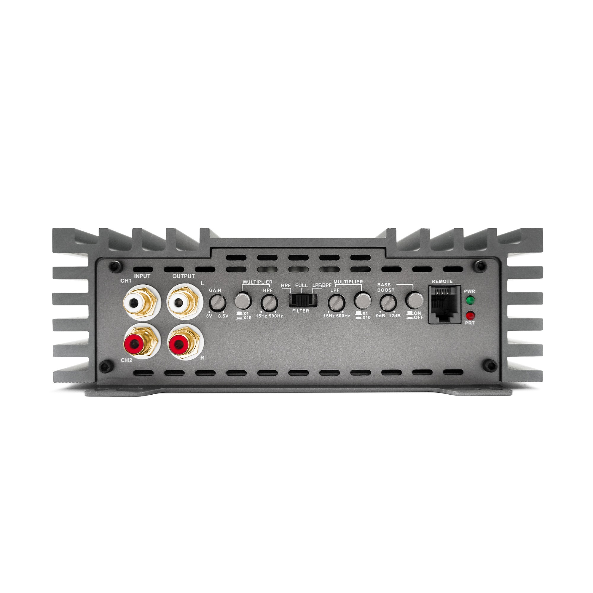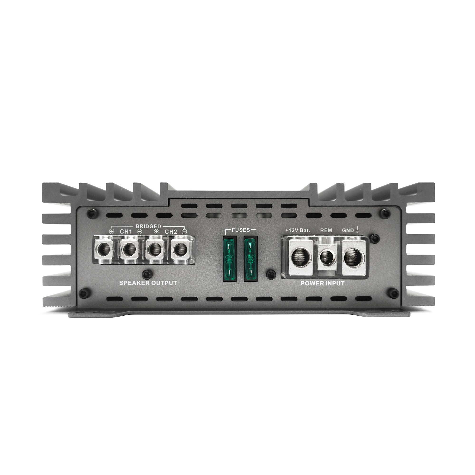 | Počet kanálov zosilňovačaZosilňovače sa rozdeľujú na: - Monobloky - 2-kanálové - 3kanálové - 4kanálové - 5kanálové - 6kanálové - Viac kanálové Každý kanál slúži na napájanie jedného reproduktora u koaxialneho typu, popr. jednej strany, keď sa jedná o komponentné reproduktory. Zosilňovače typu monoblok sa používajú hlavne na subwoofery. 2kanálové sú vhodné ako na subwoofery, tak napríklad na prednej pár reproduktorov v aute. 3kanálové sa používa na predné alebo zadné reproduktory + subwoofer. 4kanálové sa používajú na predné + zadné reproduktory alebo 1 pár reproduktorov + subwoofer. 6 alebo 5kanálové sa používajú na 2 páry reproduktorov + subwoofer, najčastejšie. Můstkování znamená zapojenie zosilňovače do mostíka, keď sa uplatňuje + pól z jedného kanála a - pól z druhého kanála. Vo väčšine prípadov to býva na zosilňovači znázornenej ako "Bridged". | 2 |