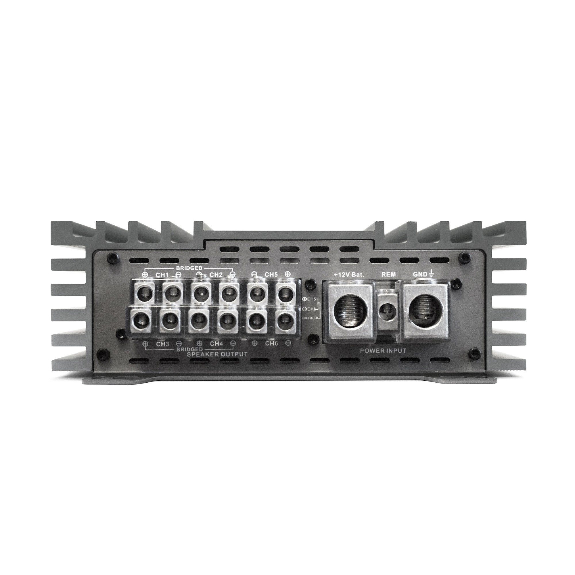| Počet kanálov zosilňovačaZosilňovače sa rozdeľujú na: - Monobloky - 2-kanálové - 3kanálové - 4kanálové - 5kanálové - 6kanálové - Viac kanálové Každý kanál slúži na napájanie jedného reproduktora u koaxialneho typu, popr. jednej strany, keď sa jedná o komponentné reproduktory. Zosilňovače typu monoblok sa používajú hlavne na subwoofery. 2kanálové sú vhodné ako na subwoofery, tak napríklad na prednej pár reproduktorov v aute. 3kanálové sa používa na predné alebo zadné reproduktory + subwoofer. 4kanálové sa používajú na predné + zadné reproduktory alebo 1 pár reproduktorov + subwoofer. 6 alebo 5kanálové sa používajú na 2 páry reproduktorov + subwoofer, najčastejšie. Můstkování znamená zapojenie zosilňovače do mostíka, keď sa uplatňuje + pól z jedného kanála a - pól z druhého kanála. Vo väčšine prípadov to býva na zosilňovači znázornenej ako "Bridged". | 6 |