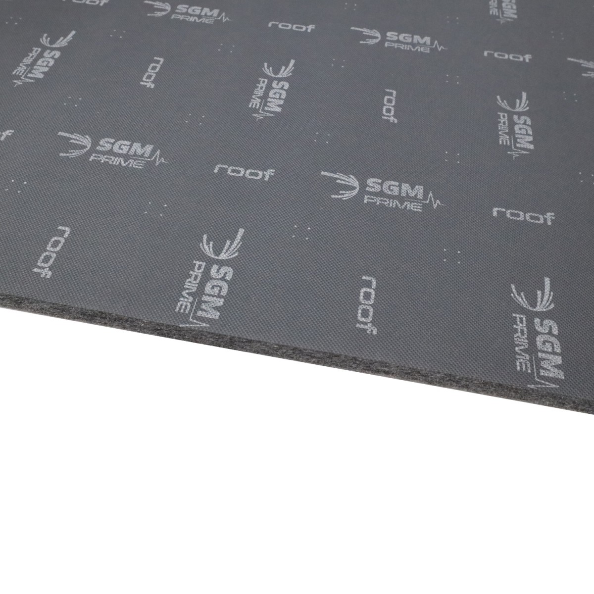 SGM Roof Prime je zvukovoizolačný materiál z najvyššieho modelového radu SGM Prime z roku 2020. Roof Prime je určený výhradne pre odhlučnenie strechy a s hrúbkou 10 mm umožňuje zvukovú izoláciu až 20 dB. Takej účinnosti bolo dosiahnuté vďaka zloženiu materiálu z akustickej plsti s vysokým koeficientom absrobcie hluku a to najmä o stredne vysokých frekvenciách. Roof Prime plní aj tepelnoizolačnú funkciu strechy a je vodeodolný vzhľadom k použitiu hydrofóbnej zmesi pre spracovanie vlákien. Extrémne priľnavá samolepiaca vrstva zase zaručuje účinnosť pri -40 °C do +100 °C a materiál si zachováva stálu účinnosť po celú životnosť vozidla.